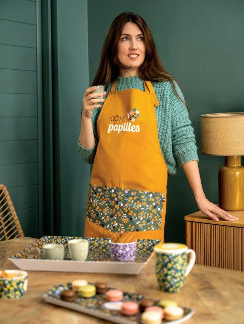 Le tablier ALMA MATER Côte Papilles est fabriqué en France et en 100% coton des Vosges.