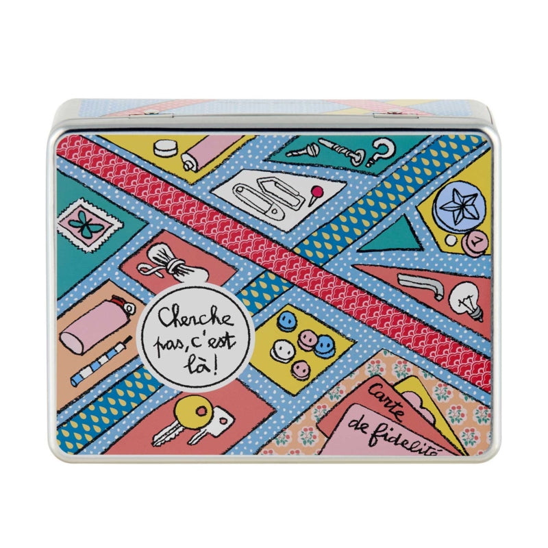 Clés, papiers, monnaie… tout trouvera sa place dans la boite métal à bazar « Cherche pas » DERRIERE LA PORTE !